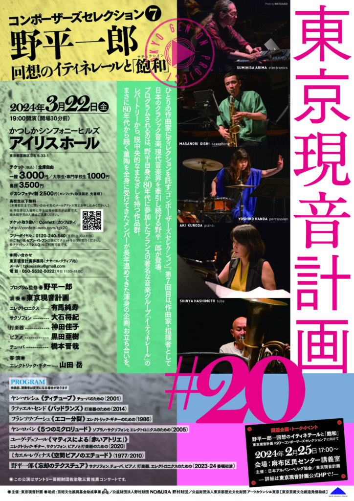 東京現音計画#20~コンポーザーズセレクション7:野平一郎〜回想のイティネレールと「飽和」(サチュラシオン)